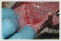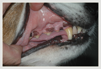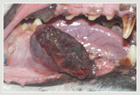 | Die Mundhöhle ist die vierthäufigste Lokalisation für bösartige Tumoren bei Hund und Katze (Eickhoff, 2005). Leider werden sie aufgrund der zumeist späten Diagnose oft erst spät entdeckt und führen dann häufig zur Euthanasie ohne weitere spezifische Behandlung. Dabei können auch in der Veterinärmedizin bei guter frühzeitiger Diagnostik und entsprechend intensiver Therapie gute Erfolge mit vergleichsweise langen lebenswerten Überlebensraten erzielt werden. Die Besprechung der jeweiligen Maßnahmen muss genau besprochen werden und den Bedenken der Tierbesitzer angepasste Kompromisse eingegangen werden. | ![]() |
